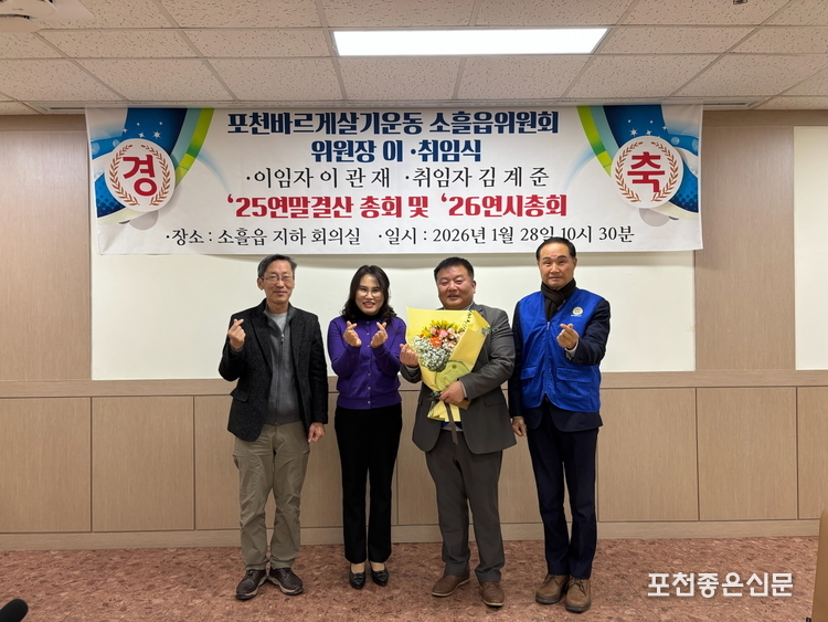 김계준 위원장은 “부족한 제가 소흘읍 바르게살기 위원장이라는 중책을 맡게 돼 어깨가 무겁다. 위원 여러분과 함께라면 충분히 해낼 수 있다는 믿음으로 이 자리에 섰다. 바르게 산다는 것은 정직하게 살고 서로를 배려하며 공동체를 먼저 생각하는 삶이다. 위원들과 함께 지역사회에 꼭 필요한 일을 묵묵히 실천하는 신뢰받는 위원회를 만들어 가겠다”고 포부를 전했다.