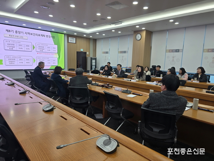 ‘행복지수 업(UP)! 건강도시 포천’ 비전을 바탕으로 「포천시 제8기(2023~2026) 지역보건의료계획」에 따른 3차년도(2025년) 시행 결과를 평가하고, 이를 토대로 4차년도(2026년) 시행계획을 수립·심의하는 등 지역보건의료사업 추진 전반을 종합적으로 검토했다.