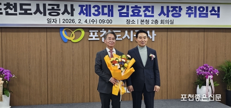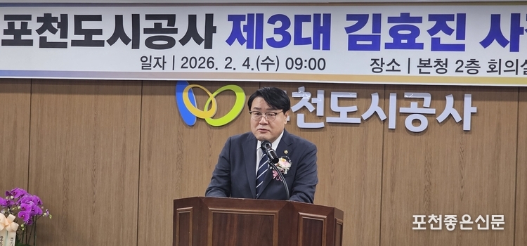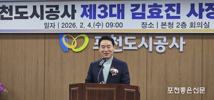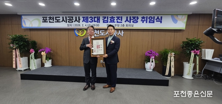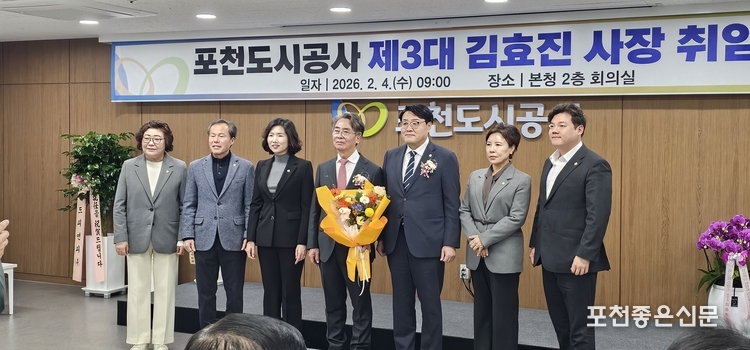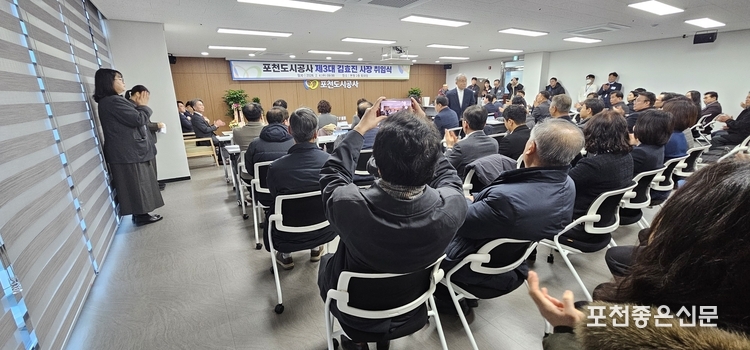 포천도시공사는 2월 4일 공사 2층 회의실에서 제3대 김효진 사장의 취임식을 거행했다. 김 사장은 포천도시공사 창립 이래 최초의 포천 출신 사장이다.