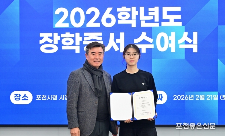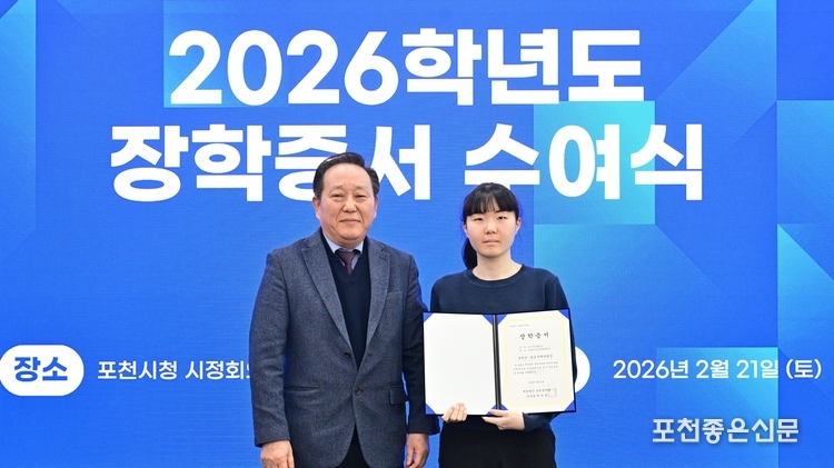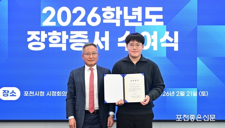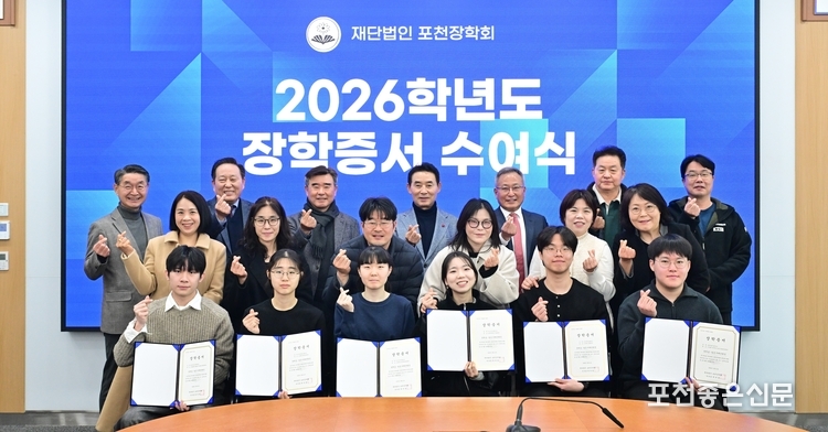 재단법인 포천장학회 (이사장 박치범)는 21일 포천시청 시정회의실에서 2026년도 장학증서 수여식을 개최했다. 재단법인 포천장학회는 1975년 설립 후 현재까지 활동을 이어오고 있는 장학 단체다.