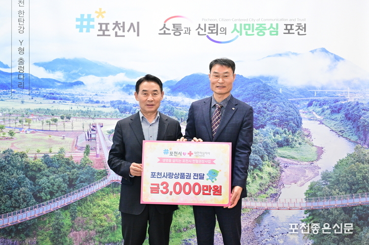 포천시는 혈액 수급 안정화와 헌혈 참여 문화 확산을 위해 매년 정기적으로 지원을 이어오고 있다. 이날 전달식에서도 포천사랑상품권 1만 원권 3,000장을 서울동부혈액원에 전달했다.