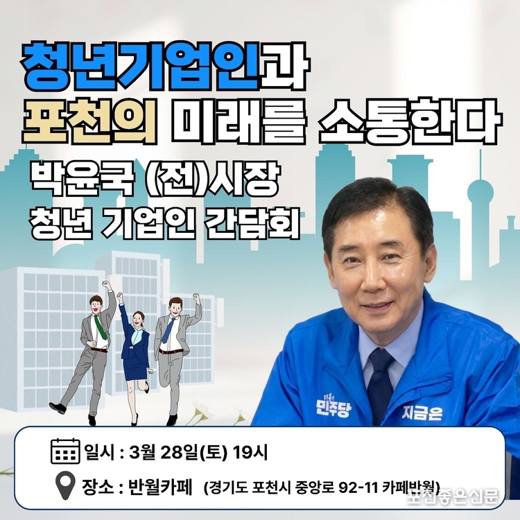 박윤국 전 시장은 오는 3월 28일(토), 카페 반월에서 ‘박윤국, 청년기업인을 만나다’ 간담회를 열고 포천 지역에서 활동하는 청년기업인 및 자영업자들과 심도 있는 대화를 나눌 계획이라고 밝혔다.