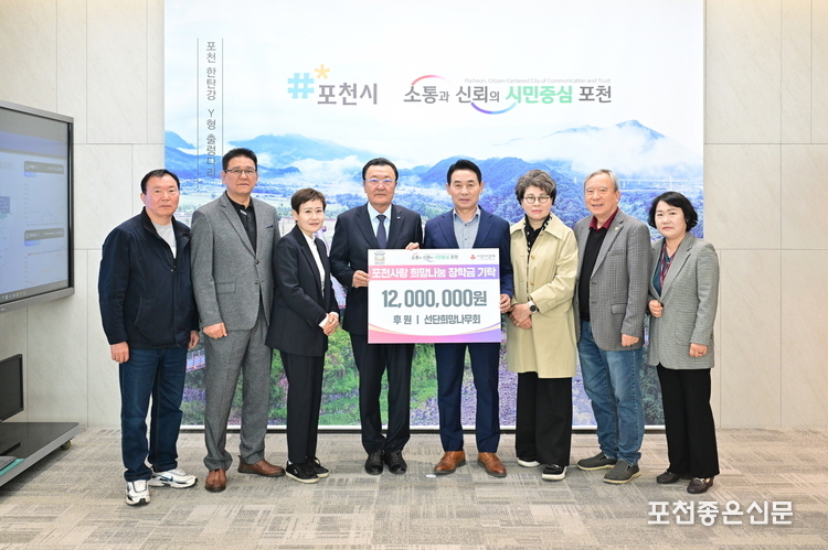 포천시는 지난 3월 25일 선단희망나무회가 기탁한 장학금 1,200만 원 전달식을 열었다.