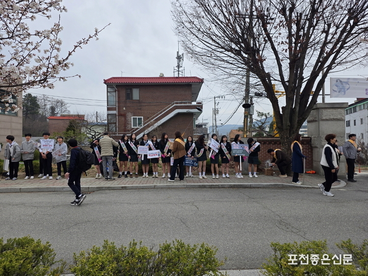 이번 캠페인은 새학기를 맞아 청소년들의 건강한 교우관계 형성과 학교폭력 예방의 중요성을 알리기 위해 마련됐다. 포천동 청소년지도협의회를 중심으로 포천중학교와 포천여자중학교, 포천경찰서, 포천동 행정복지센터가 함께했으며, 교사와 학생, 관계기관 직원 등 100여 명이 참여했다.