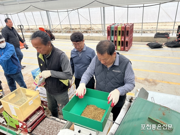 포천농협(조합장 김광열)은 지난 10일 농협 가양리 육묘장에서 2026년 고품질 쌀 생산의 첫걸음인 '알찬미 육묘 파종'을 본격적으로 시작했다.