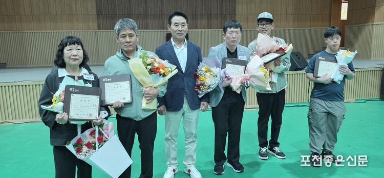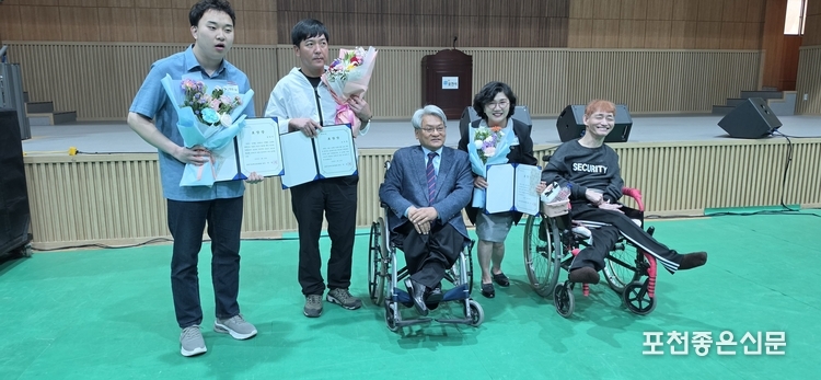 세움직업재활센타 김정진은 모범장애인으로, 경기도지체장애인협회 포천시지회 오무훈, 남사랑의집 정미숙 등 2명은 장애인 복지 유공으로 포천시장애인총연합회장 표창을 받았다.