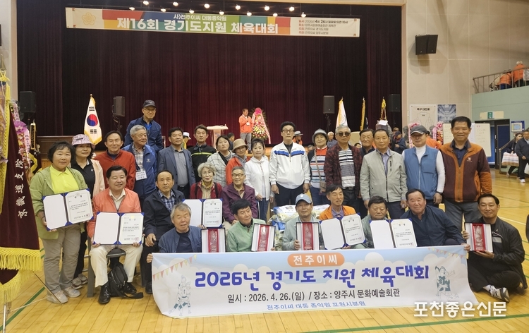 2026년 경기도가 지원한 '제16회 경기도 전주이씨 시군체육대회'가 26일 경기도 양주시 문화예술회관에서 개최했는데, 포천시 전주이씨 분회는 이날 참가했던 4종목을 모두 석권하면서 종합우승을 차지했다.